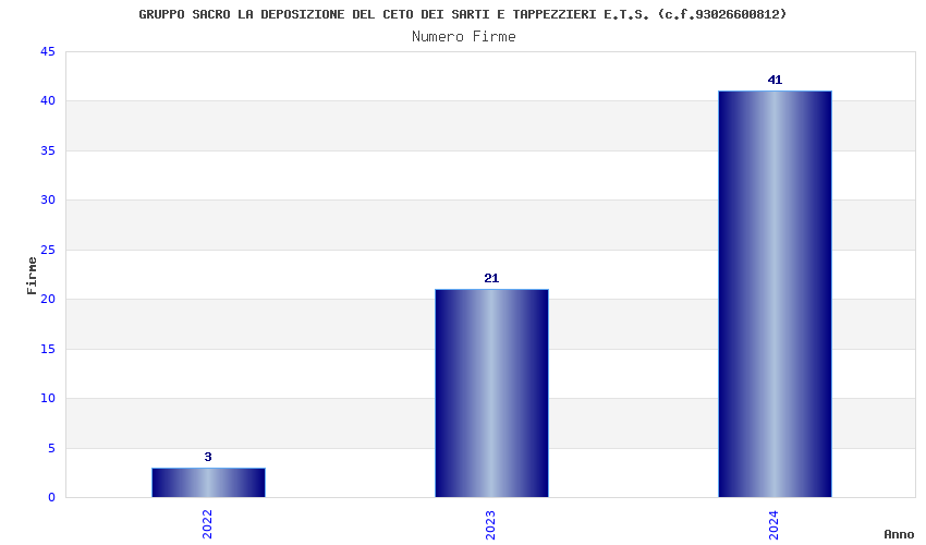 | Anno | Firme | Importi | Media | Naz. | Reg. | Prov. | Comu. |