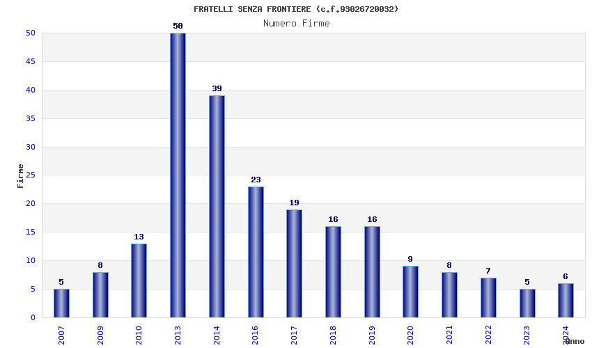| Anno | Firme | Importi | Media | Naz. | Reg. | Prov. | Comu. |