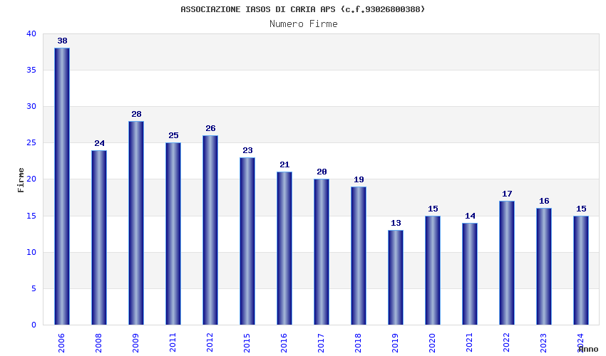 | Anno | Firme | Importi | Media | Naz. | Reg. | Prov. | Comu. |