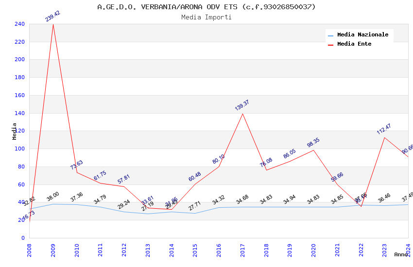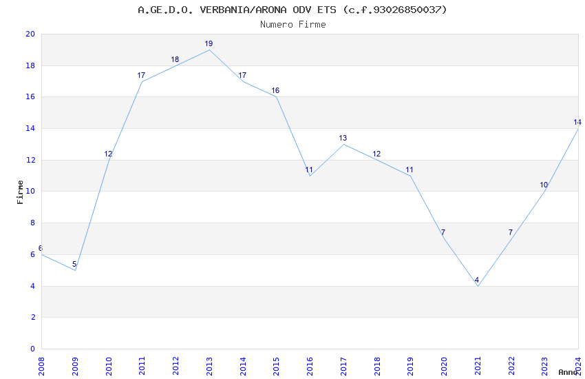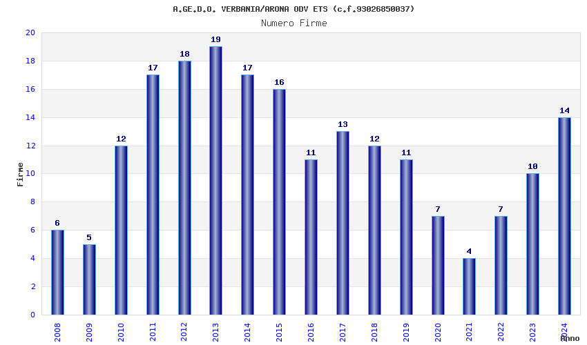 | Anno | Firme | Importi | Media | Naz. | Reg. | Prov. | Comu. |