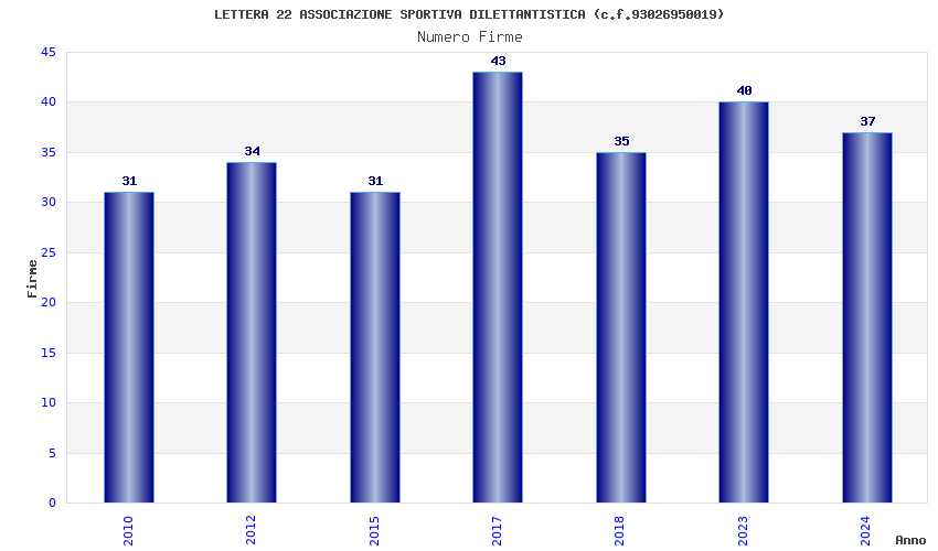 | Anno | Firme | Importi | Media | Naz. | Reg. | Prov. | Comu. |