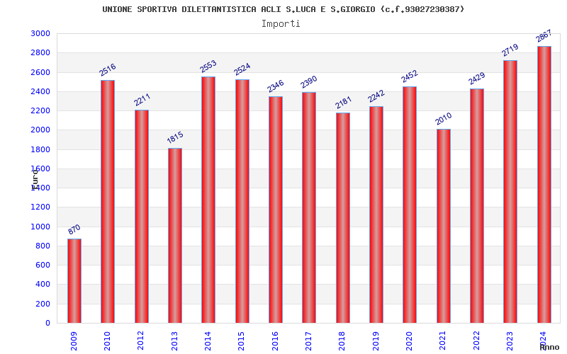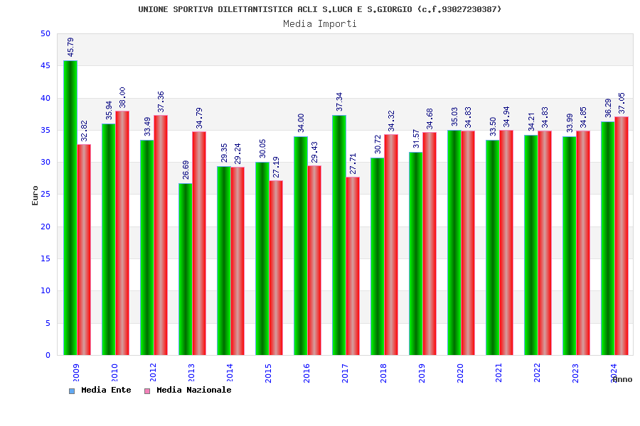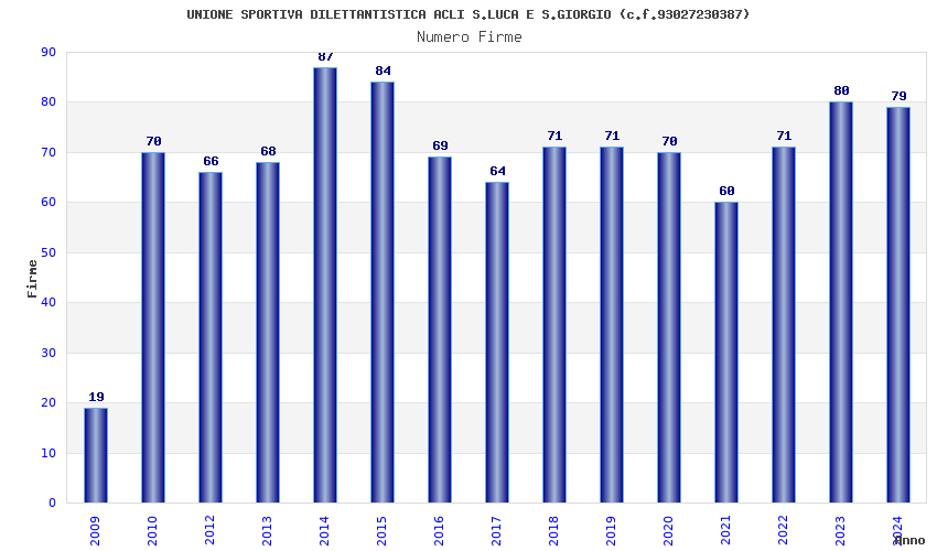 | Anno | Firme | Importi | Media | Naz. | Reg. | Prov. | Comu. |