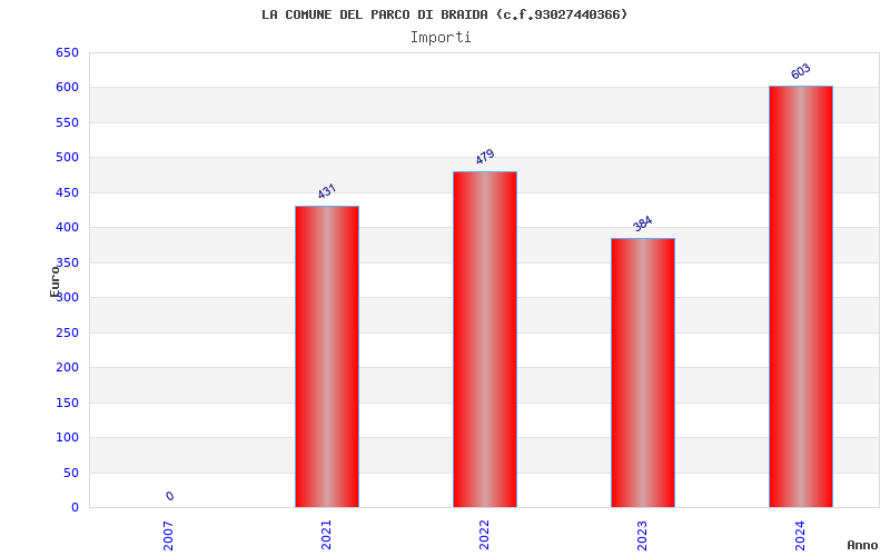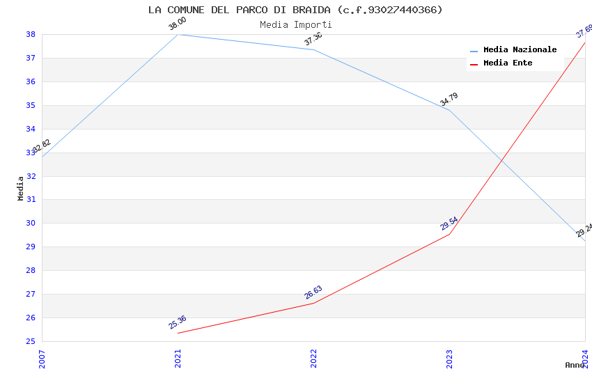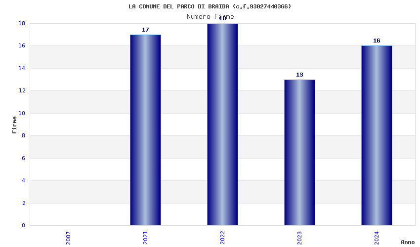 | Anno | Firme | Importi | Media | Naz. | Reg. | Prov. | Comu. |