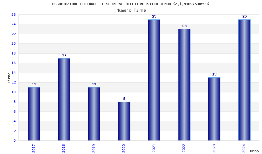 | Anno | Firme | Importi | Media | Naz. | Reg. | Prov. | Comu. |