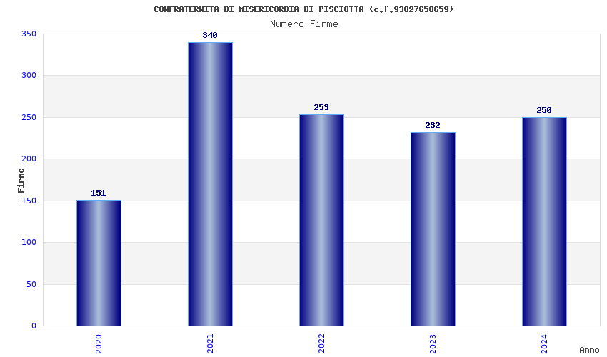 | Anno | Firme | Importi | Media | Naz. | Reg. | Prov. | Comu. |