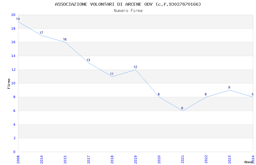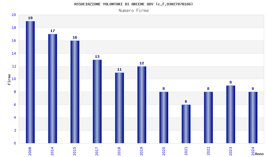 | Anno | Firme | Importi | Media | Naz. | Reg. | Prov. | Comu. |