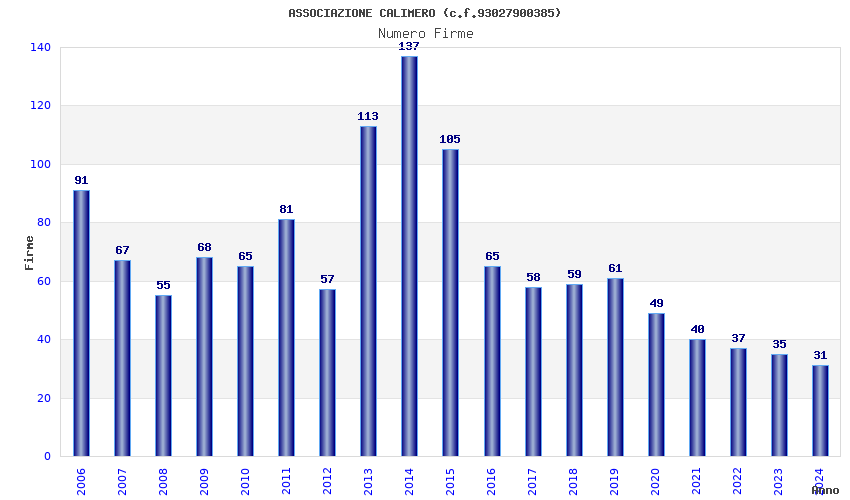 | Anno | Firme | Importi | Media | Naz. | Reg. | Prov. | Comu. |