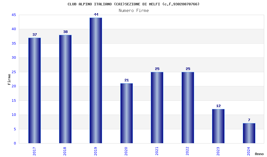 | Anno | Firme | Importi | Media | Naz. | Reg. | Prov. | Comu. |