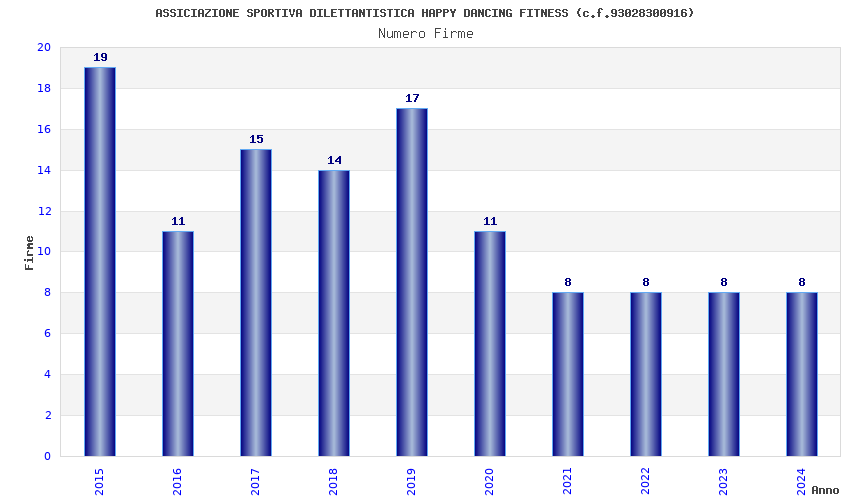 | Anno | Firme | Importi | Media | Naz. | Reg. | Prov. | Comu. |