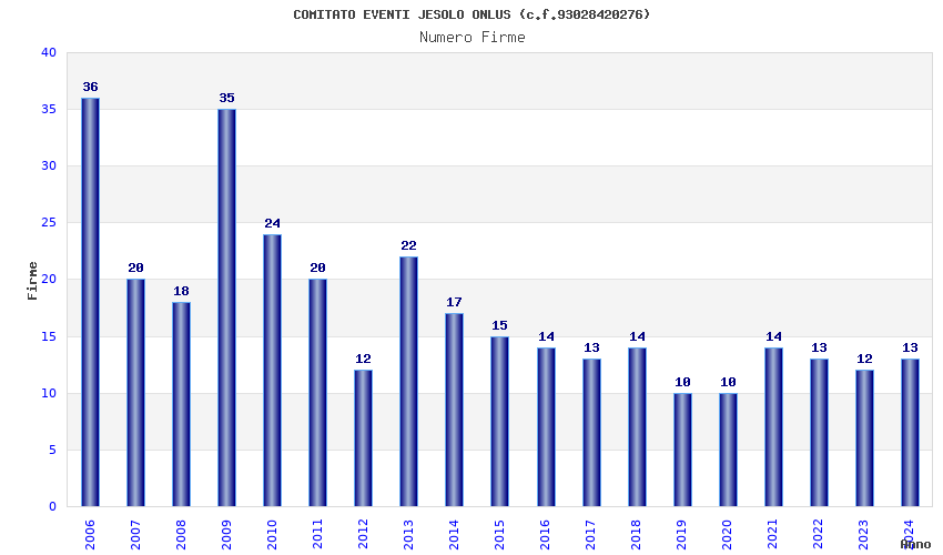 | Anno | Firme | Importi | Media | Naz. | Reg. | Prov. | Comu. |