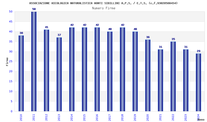| Anno | Firme | Importi | Media | Naz. | Reg. | Prov. | Comu. |