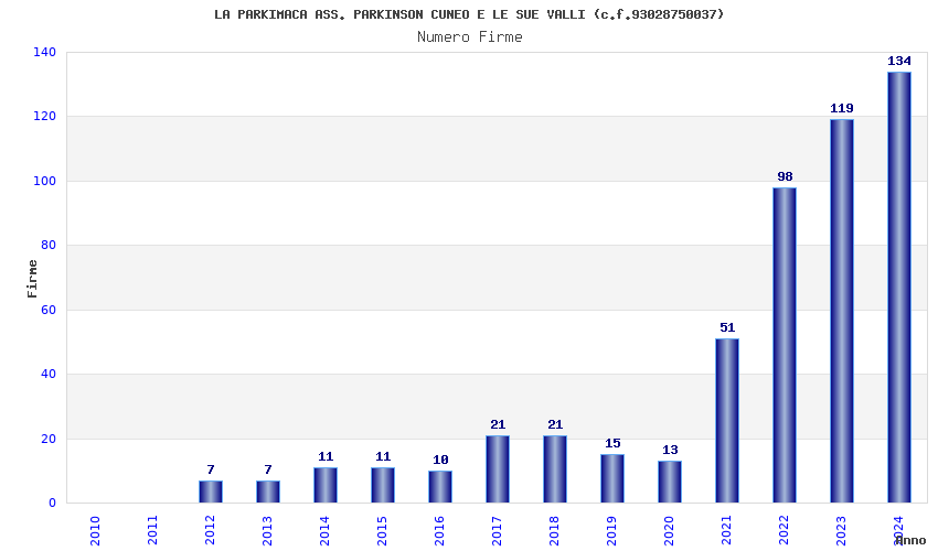 | Anno | Firme | Importi | Media | Naz. | Reg. | Prov. | Comu. |