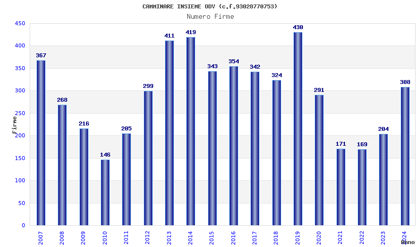 | 2014 | 419 | 7.147,83 | 17,06 | 7.529 | 345 | 51 | 1 |