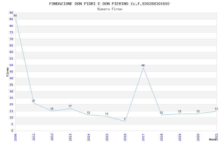 | Anno | Firme | Importi | Media | Naz. | Reg. | Prov. | Comu. |