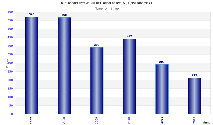 | Anno | Firme | Importi | Media | Naz. | Reg. | Prov. | Comu. |
