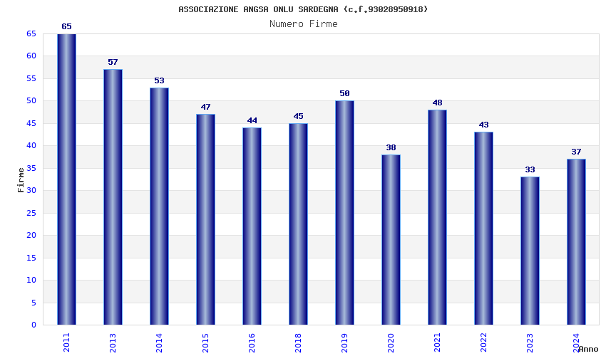 | Anno | Firme | Importi | Media | Naz. | Reg. | Prov. | Comu. |