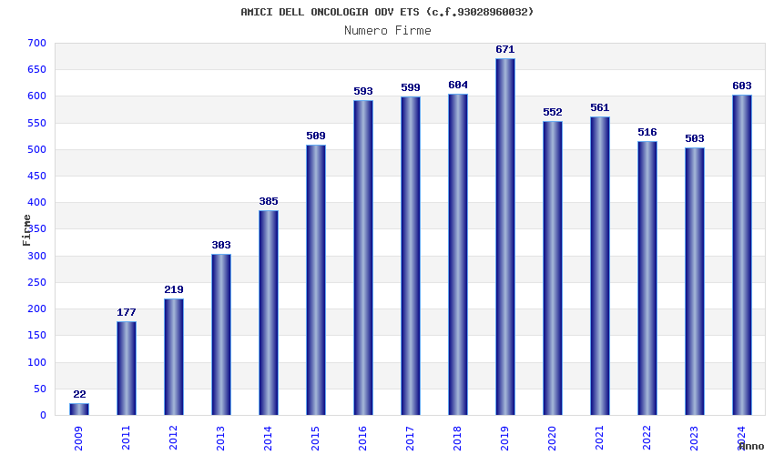| Anno | Firme | Importi | Media | Naz. | Reg. | Prov. | Comu. |