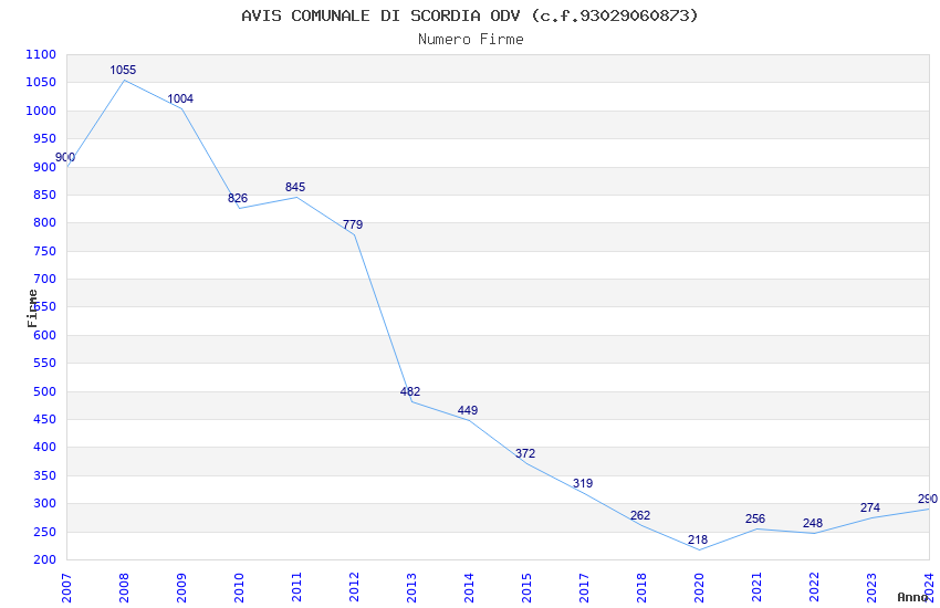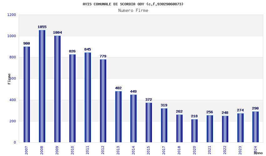 | Anno | Firme | Importi | Media | Naz. | Reg. | Prov. | Comu. |