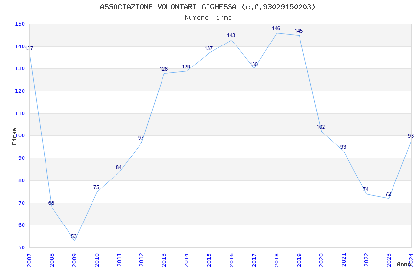 | 2023 | 72 | 3.624,29 | 50,34 | 14.748 | 3.258 | 83 | 25 |