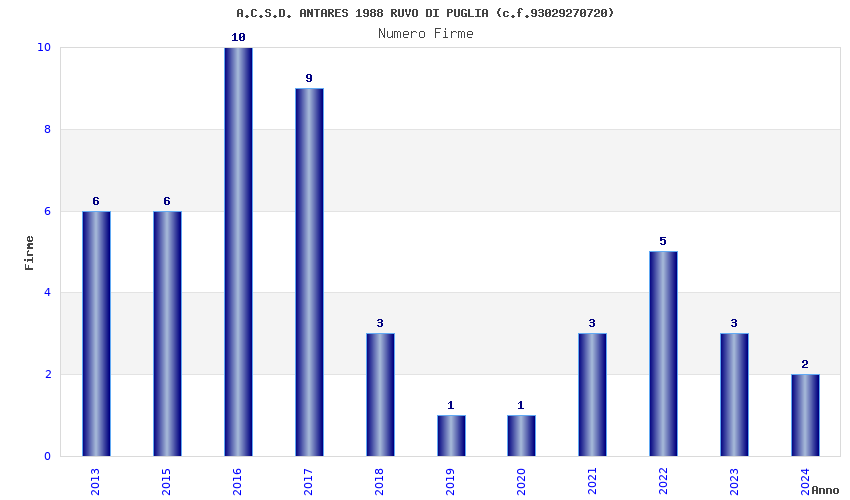 | Anno | Firme | Importi | Media | Naz. | Reg. | Prov. | Comu. |