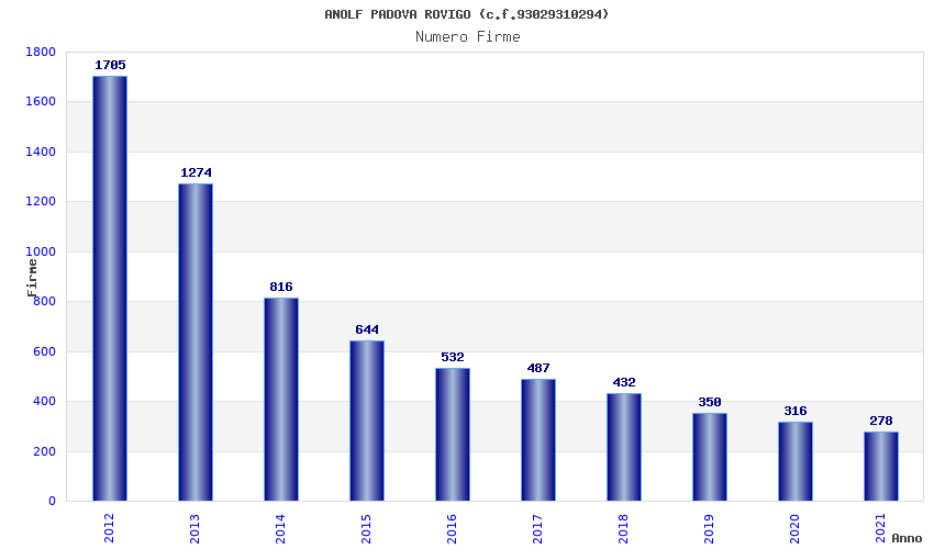 Anno Firme Importi Media Naz. Reg. Prov. Comu.