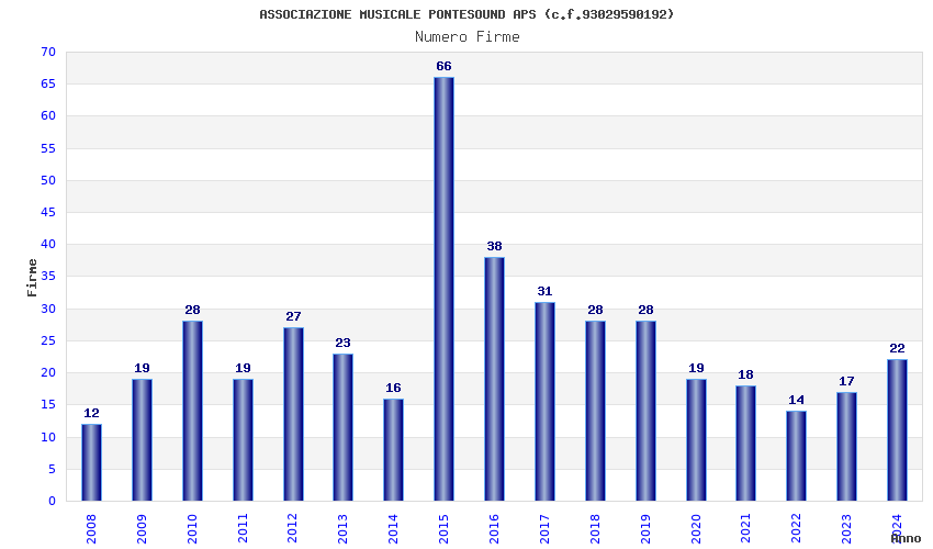 | Anno | Firme | Importi | Media | Naz. | Reg. | Prov. | Comu. |