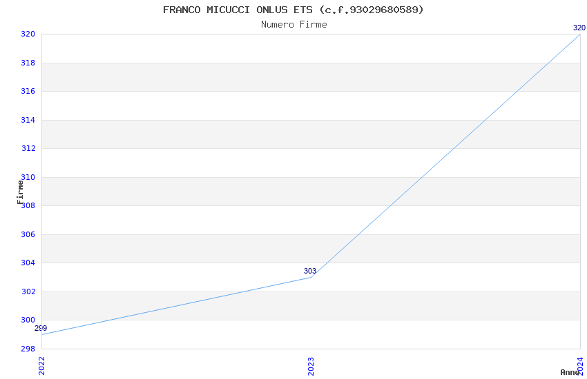 | Anno | Firme | Importi | Media | Naz. | Reg. | Prov. | Comu. |