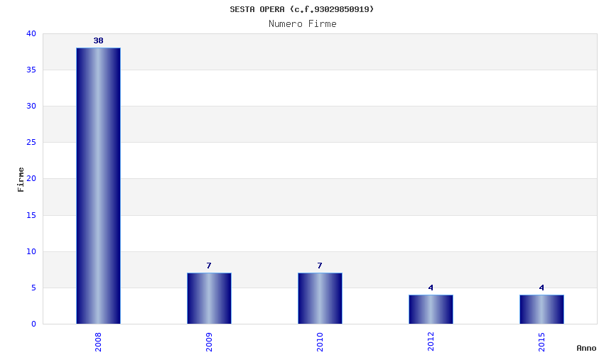 | Anno | Firme | Importi | Media | Naz. | Reg. | Prov. | Comu. |