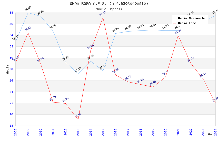 | Anno | Firme | Importi | Media | Naz. | Reg. | Prov. | Comu. |