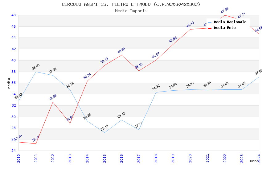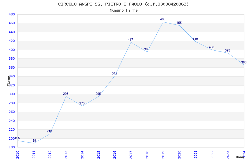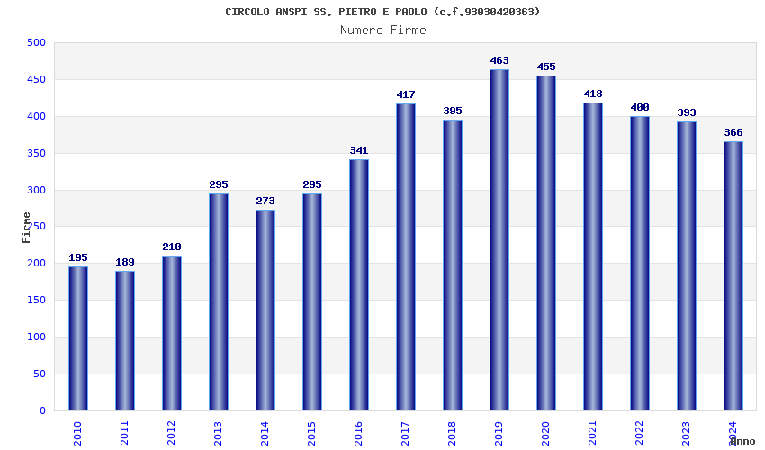 | Anno | Firme | Importi | Media | Naz. | Reg. | Prov. | Comu. |