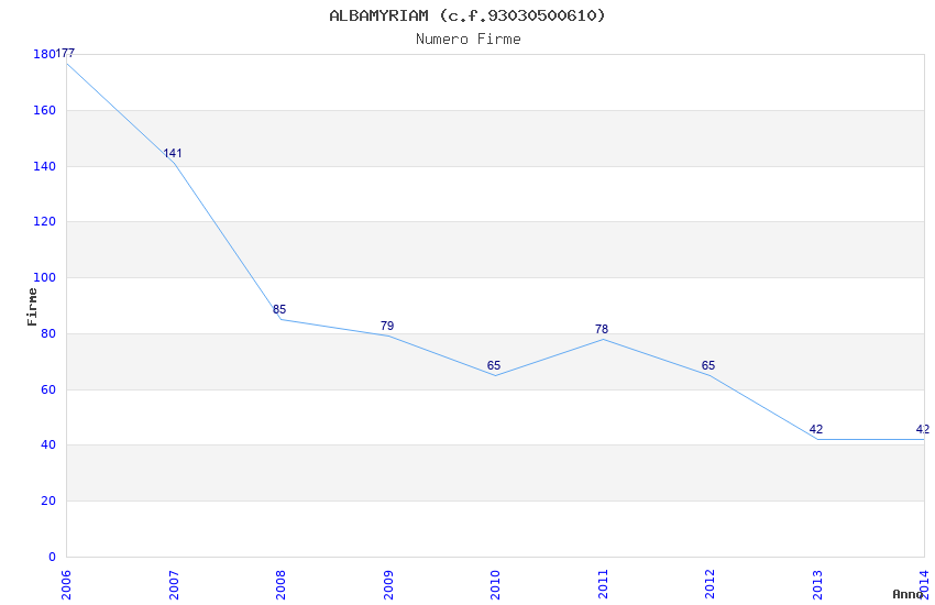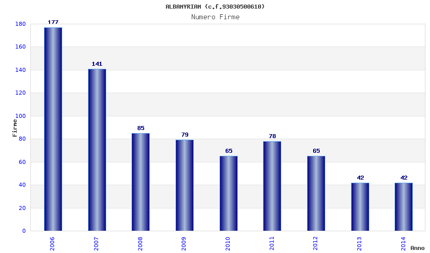 | Anno | Firme | Importi | Media | Naz. | Reg. | Prov. | Comu. |