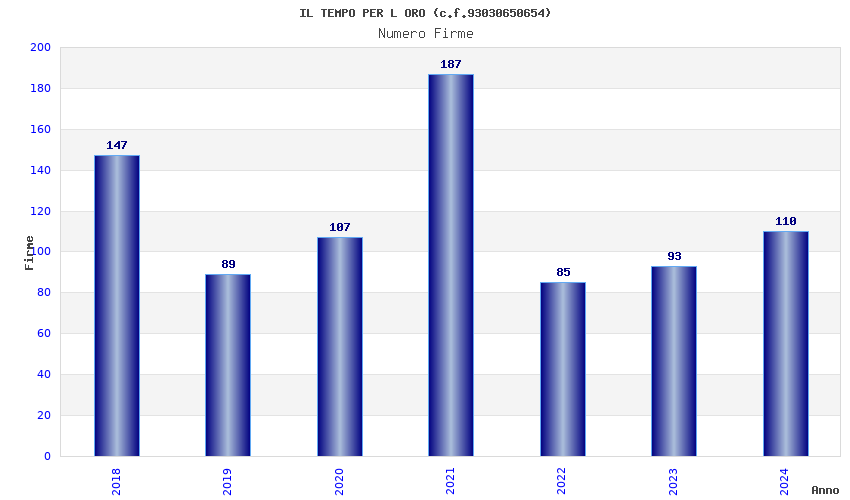 | Anno | Firme | Importi | Media | Naz. | Reg. | Prov. | Comu. |