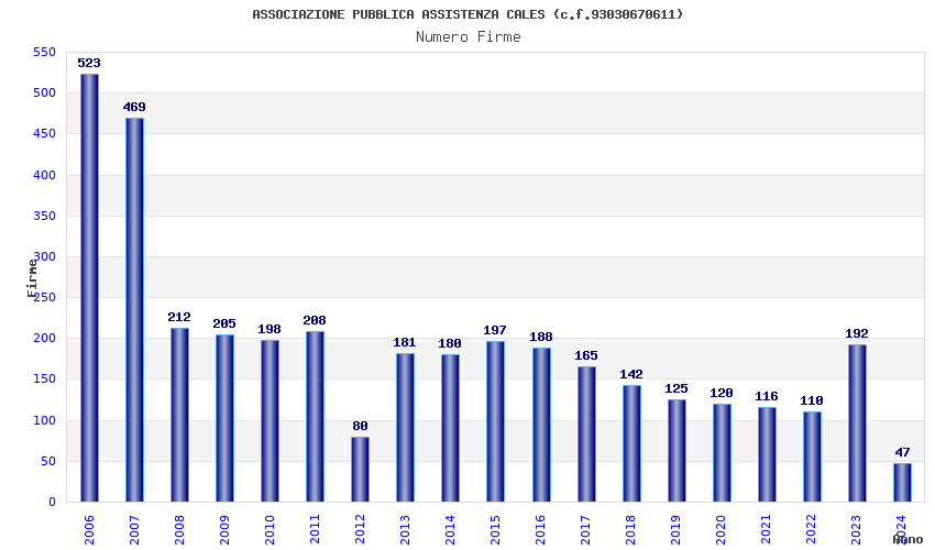 | Anno | Firme | Importi | Media | Naz. | Reg. | Prov. | Comu. |