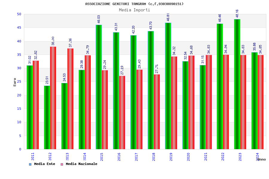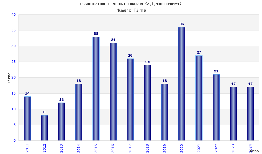| Anno | Firme | Importi | Media | Naz. | Reg. | Prov. | Comu. |