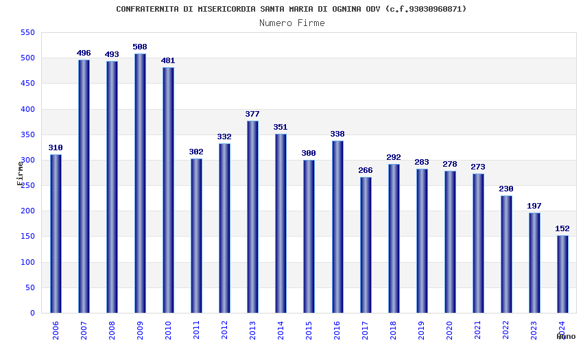 | Anno | Firme | Importi | Media | Naz. | Reg. | Prov. | Comu. |