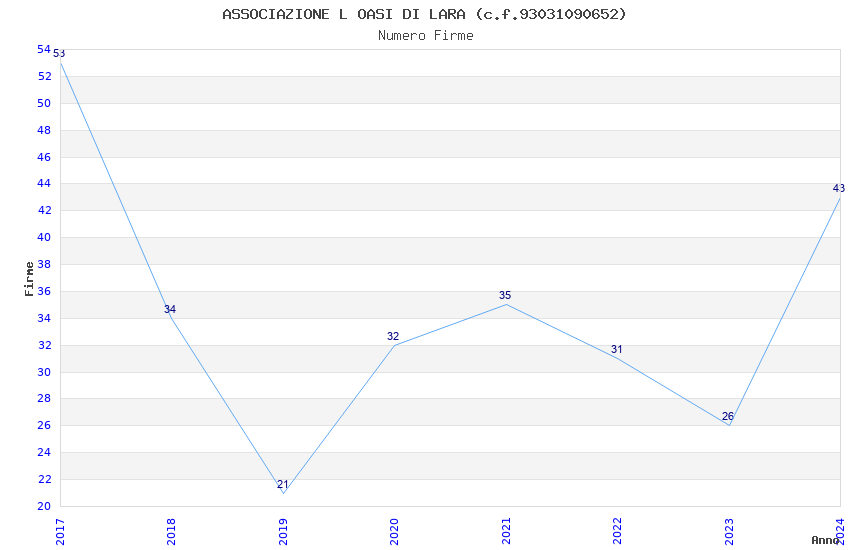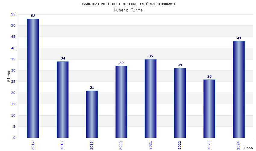 | Anno | Firme | Importi | Media | Naz. | Reg. | Prov. | Comu. |