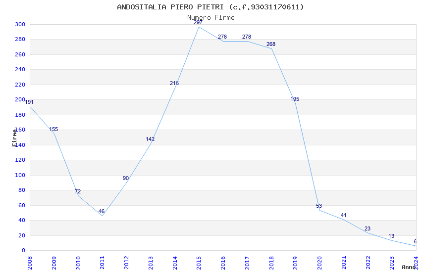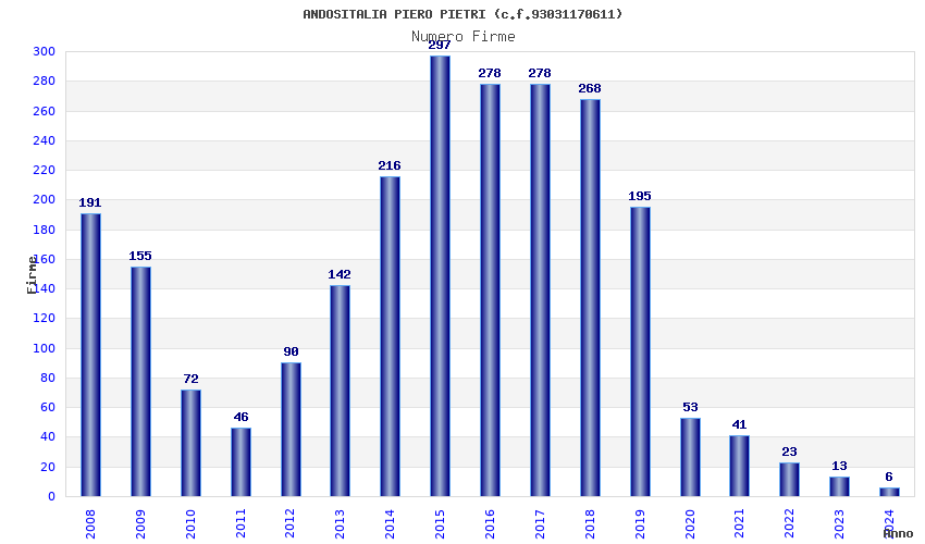 | Anno | Firme | Importi | Media | Naz. | Reg. | Prov. | Comu. |