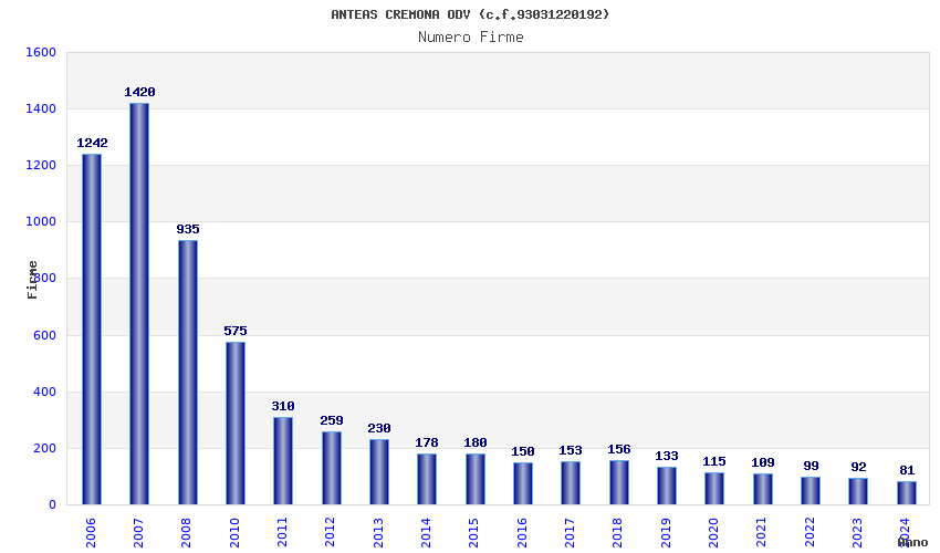 | Anno | Firme | Importi | Media | Naz. | Reg. | Prov. | Comu. |