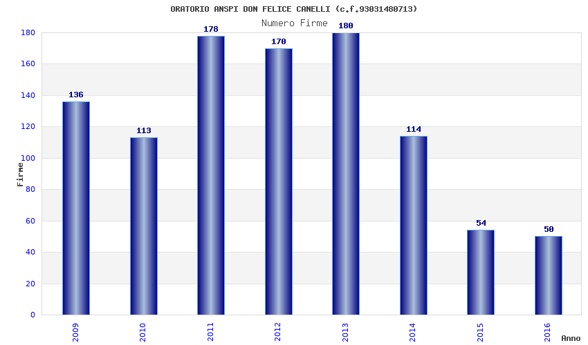| Anno | Firme | Importi | Media | Naz. | Reg. | Prov. | Comu. |
