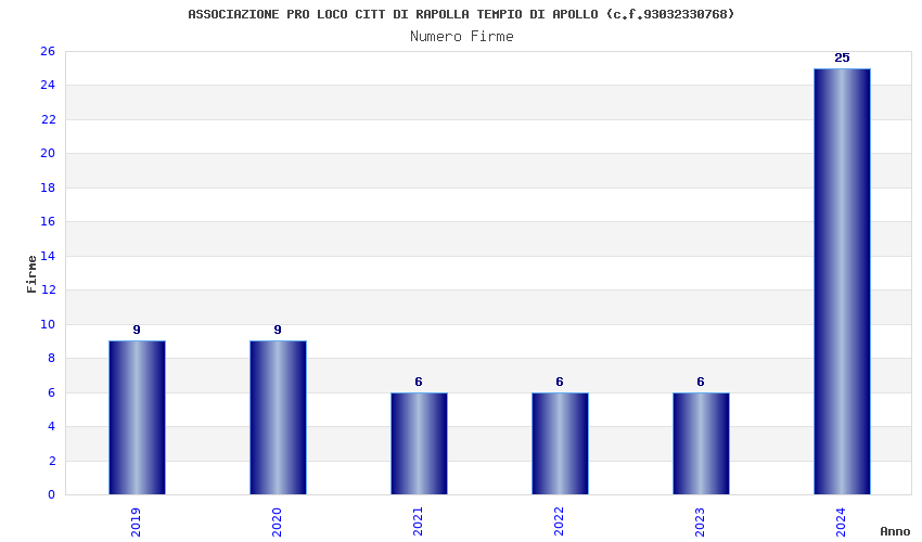 | Anno | Firme | Importi | Media | Naz. | Reg. | Prov. | Comu. |