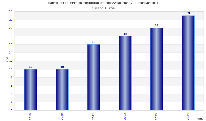 | Anno | Firme | Importi | Media | Naz. | Reg. | Prov. | Comu. |