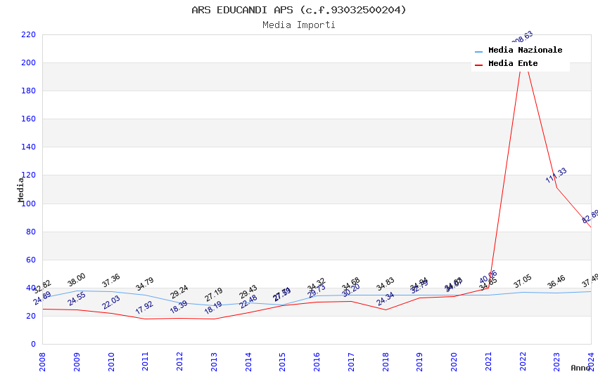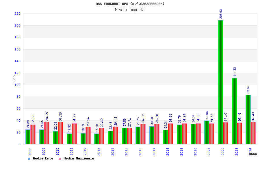 | Anno | Firme | Importi | Media | Naz. | Reg. | Prov. | Comu. |