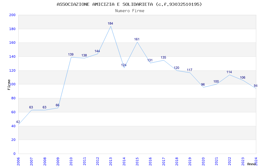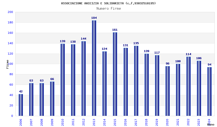 | Anno | Firme | Importi | Media | Naz. | Reg. | Prov. | Comu. |