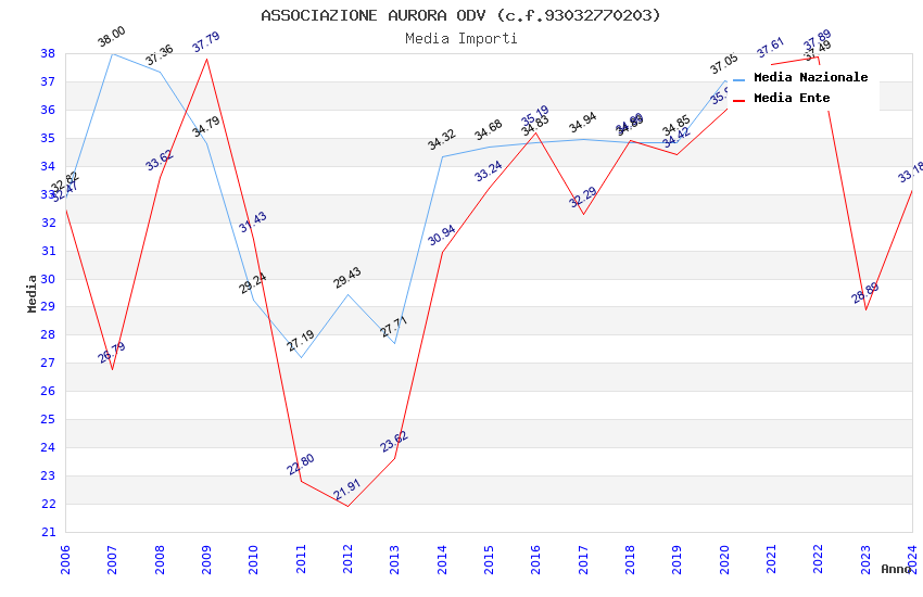 | Anno | Firme | Importi | Media | Naz. | Reg. | Prov. | Comu. |