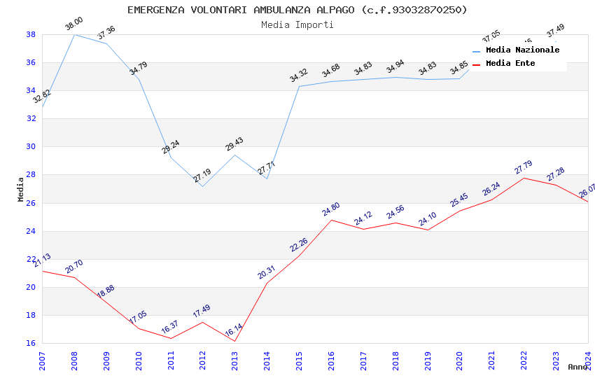 | Anno | Firme | Importi | Media | Naz. | Reg. | Prov. | Comu. |