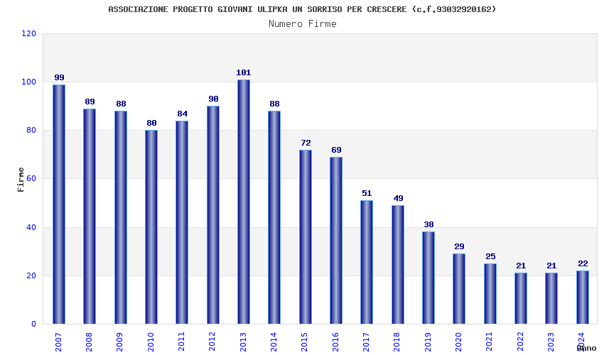 | Anno | Firme | Importi | Media | Naz. | Reg. | Prov. | Comu. |