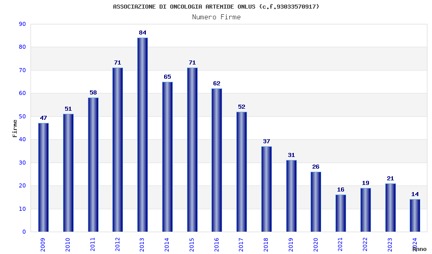 Anno Firme Importi Media Naz. Reg. Prov. Comu.