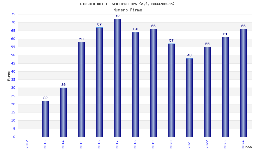 | 2017 | 72 | 1.556,64 | 21,62 | 27.400 | 2.564 | 511 | 7 |