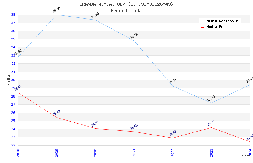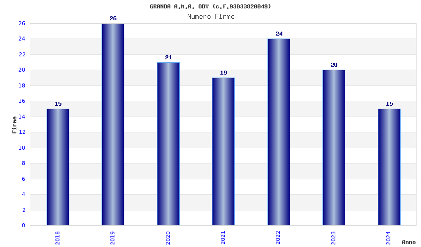 | Anno | Firme | Importi | Media | Naz. | Reg. | Prov. | Comu. |