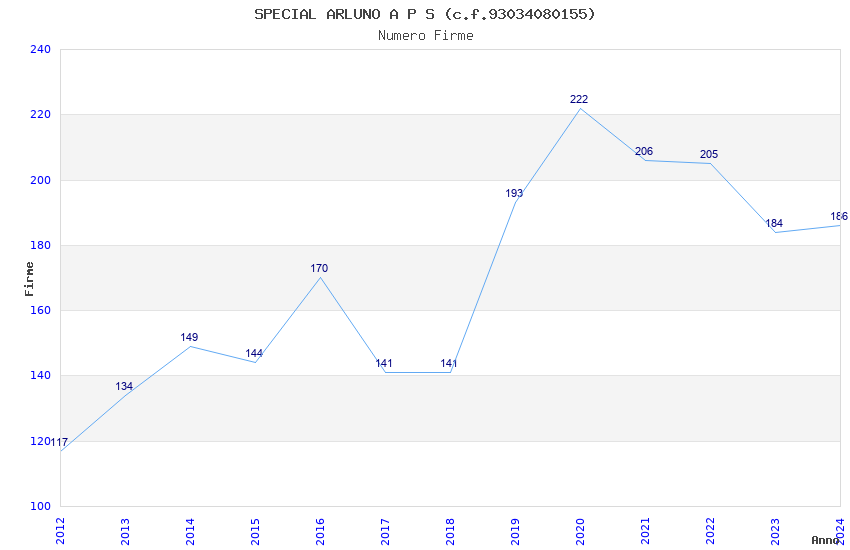 | Anno | Firme | Importi | Media | Naz. | Reg. | Prov. | Comu. |